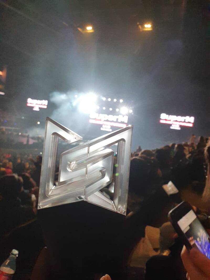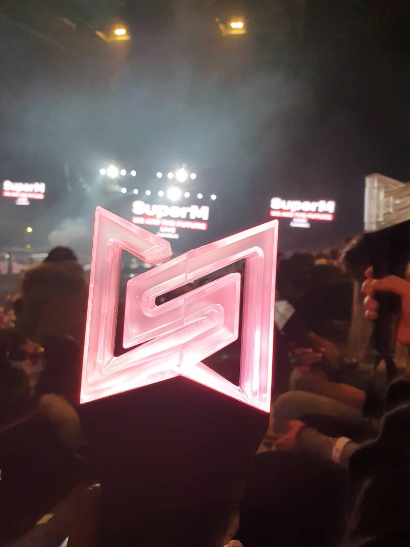 We bought the light of the logo of SuperM. I tried it on and it turned out pink light. When we got in the concert, we thought it didn't work, something wrong, or tried change the pink back from the blue lights. We discovered that it was still working. Because when the concert started, the light changed the colours just like these photos.